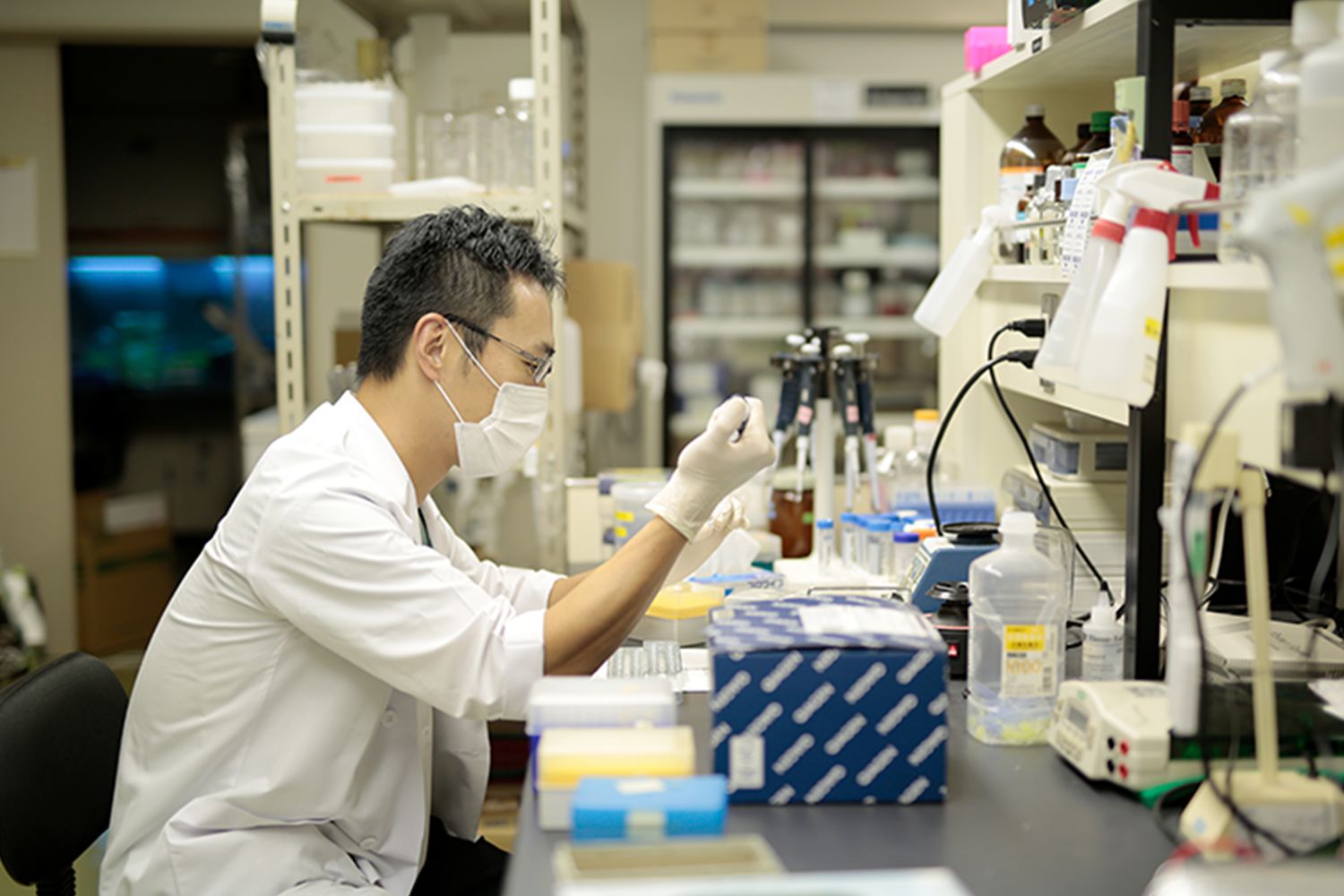 専門学校を出て、福祉村長寿医学研究所に勤め20年になりました。仕事の内容は、ドクターの研究補助、研究所の機器のメンテナンス、在庫管理などです。