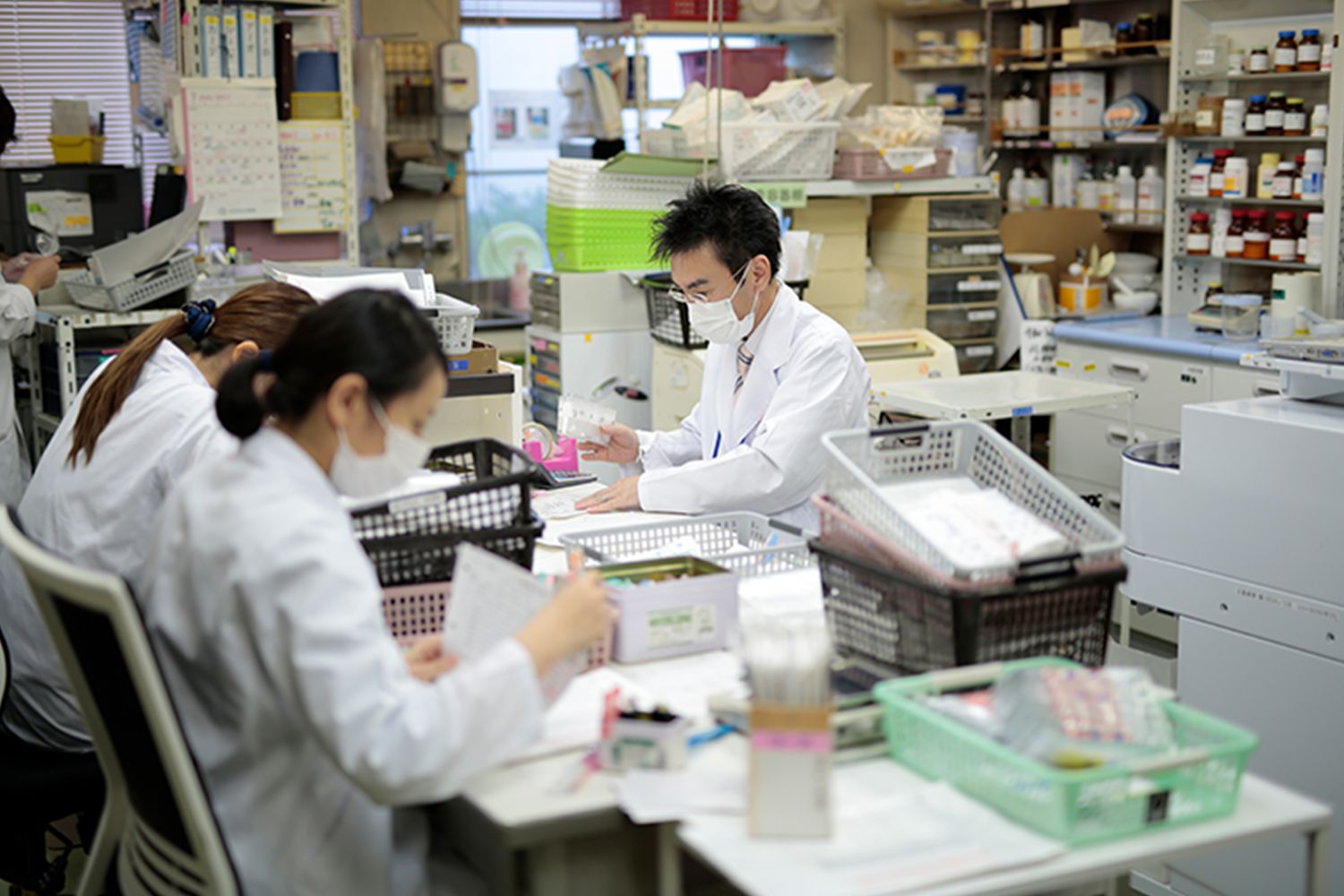 仕事:調剤業務、病棟業務、服薬説明など。